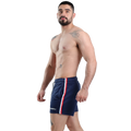Short Corto lineas deportivo y casual fénix fit. Ajuste perfecto, excelente calidad, telas deportivas con secado rápido. Dos bolsas laterales y uno trasero. Cinta decorativa en los costados y agujeta alrededor de la cintura para ajuste. (El color de las agujetas puede variar de acuerdo a lotes de producción).